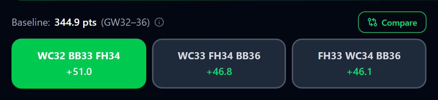 1. WC32 BB33 FH34 TC36 — +70.7 pts over baseline
